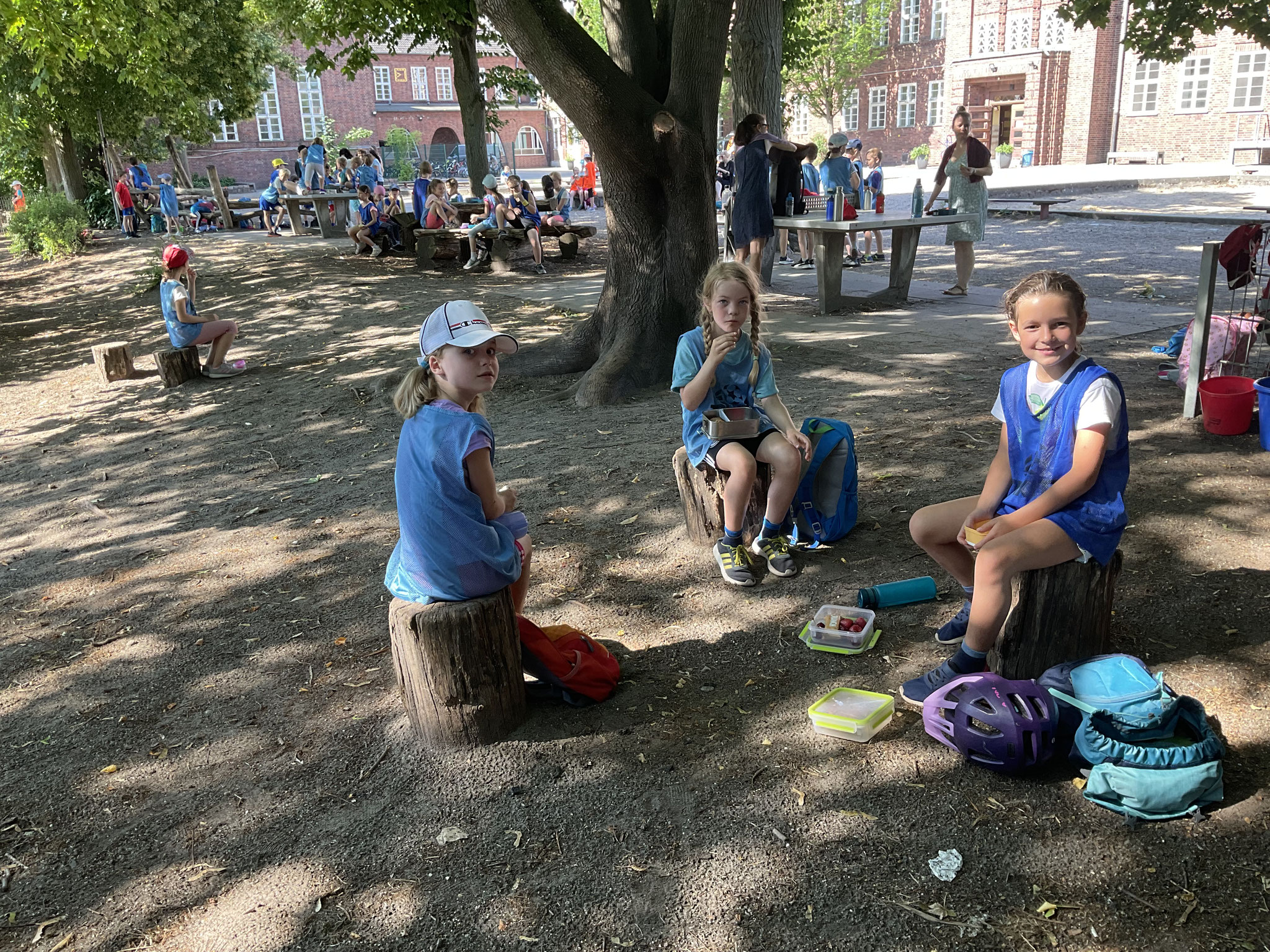 Am 07.04.22 fuhr die Klasse 1b zum Kinderbauernhof Pinke-Panke. Wir fütterten die Tiere, spielten mit Bällen, fuhren mit den Fahrrädern und Rollern und manche Kinder buddelten. Aber der Hit war das große Auto! Am Schluss machten wir ein Lagerfeuer und backten Stockbrot. Das war ein schöner Ausflug!