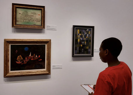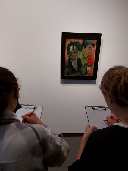 Die Klasse 6a besucht die Neue Nationalgalerie. Vor einigen Wochen wurden in der Gemäldegalerie im Kulturforum die alten Meister betrachtet, nun kamen die modernen Künstler in der Neuen Nationalgalerie an die Reihe. Wieder konnten mit Richter, Marc, Picasso, Miro, Kleebund Munch Bilder im Original betrachtet werden, die die Kinder aus ihren Vorträgen kannten. Nach ihren Eindrücken aus der Ausstellung zeichneten und malten die Kinder anschließend selbst „Bilder vom Menschen“.