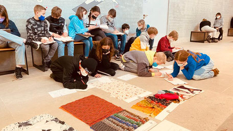 Die Klasse 6c besuchte die James-Simon-Galerie und nahm am Workshop "Textildesign: Kleider machen Leute" teil. Wir lernten in der Ausstellung viele Muster und Ornamente kennen und entwarfen Ideen für eigene Kleidungsstücke.