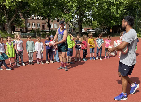 In dieser Woche hatten wir erneut Besuch von den Jugendtrainern der Rugbyunion Hohen Neuendorf. Die Jugendtrainer brachten dieses Mal den kleineren Klassen ihren Sport näher. Alle Beteiligten hatten großen Spaß und über den Schulhof schallte es jeden Tag von der ersten bis zur vierten Stunden fröhlich. Vielen Dank an die Trainer und das Organisationsteam! Dies war bestimmt nicht der letzte Besuch bei uns.