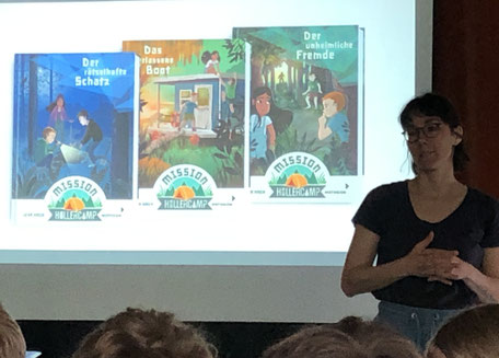 "Mission Hollercamp", das hört sich schon richtig spannend an. Lena Hach, Kinderbuchautorin aus Berlin, brachte den SchülerInnen der 4c die Helden Ihrer Krimi-Reihe näher.