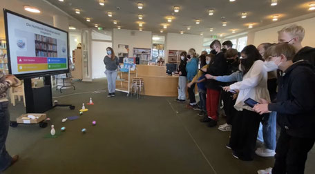 Auf unserem Ausflug in die Humboldt-Bibliothek hatten wir viel Spaß! Mit einem iPad-Quiz machten wir in Zweierteams eine Humboldt-Rallye durch die Jugendbibliothek. Zum Abschluss gab es noch ein Spiel mit "Sphero-Bolts" - sehr cool!